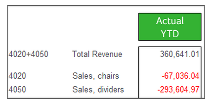 For example, typing 4020 + 4050 in the cell which is linked to the Account setting will give a total figure for Account 4020 and Account 4050.